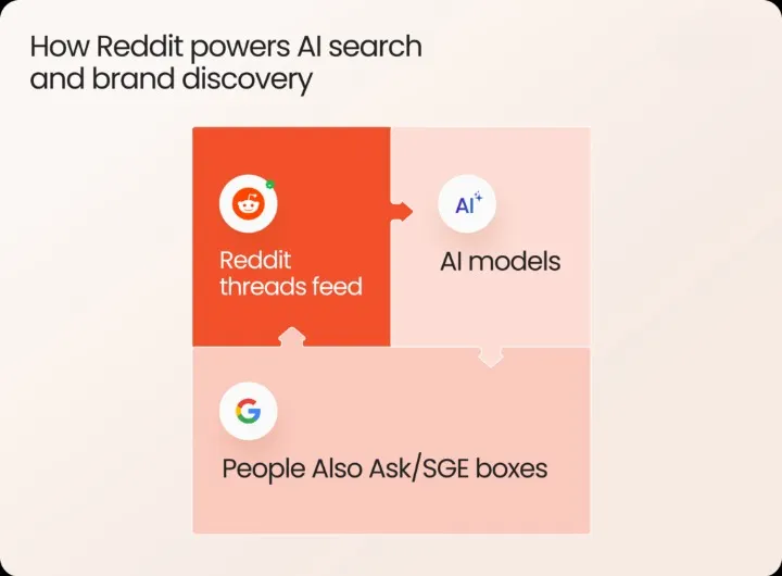 In 2025, Google’s $60 million partnership with Reddit deepened this connection — not only surfacing Reddit content in new features like AI Overviews and People Also Ask, but also integrating Reddit data directly into large language model (LLM) training sets.