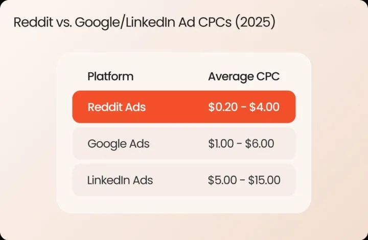 In 2026, the average cost-per-click (CPC) ranges from $0.20 to $4, often making Reddit up to five times more cost-effective than platforms like Google or LinkedIn.