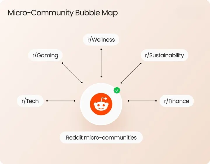Smaller subreddits (10K–100K members), also called “micro-communities,” now drive deeper advocacy and higher engagement rates than massive general-interest groups.