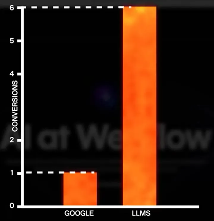 And here’s the kicker: traffic that comes from LLM answers converts at far higher rates. Ethan cited Webflow’s internal data showing a 6x uplift compared to Google search visitors. So if you’re cited, those users aren’t just reading, they’re signing up.