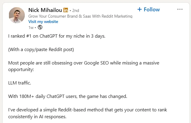 This is the exact post structure that others have followed to rank #1 on ChatGPT for their niche in 3 days: